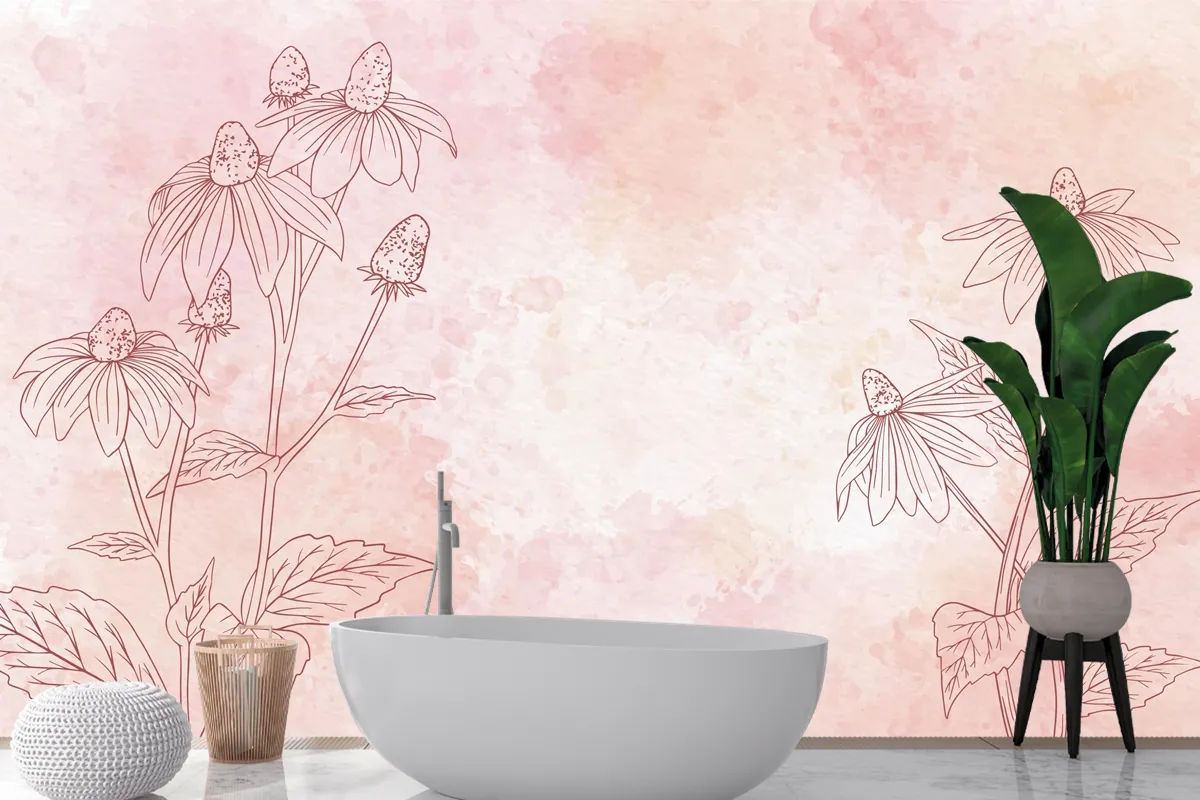 Fototapete Monochromer Blumenhintergrund In Aquarell
