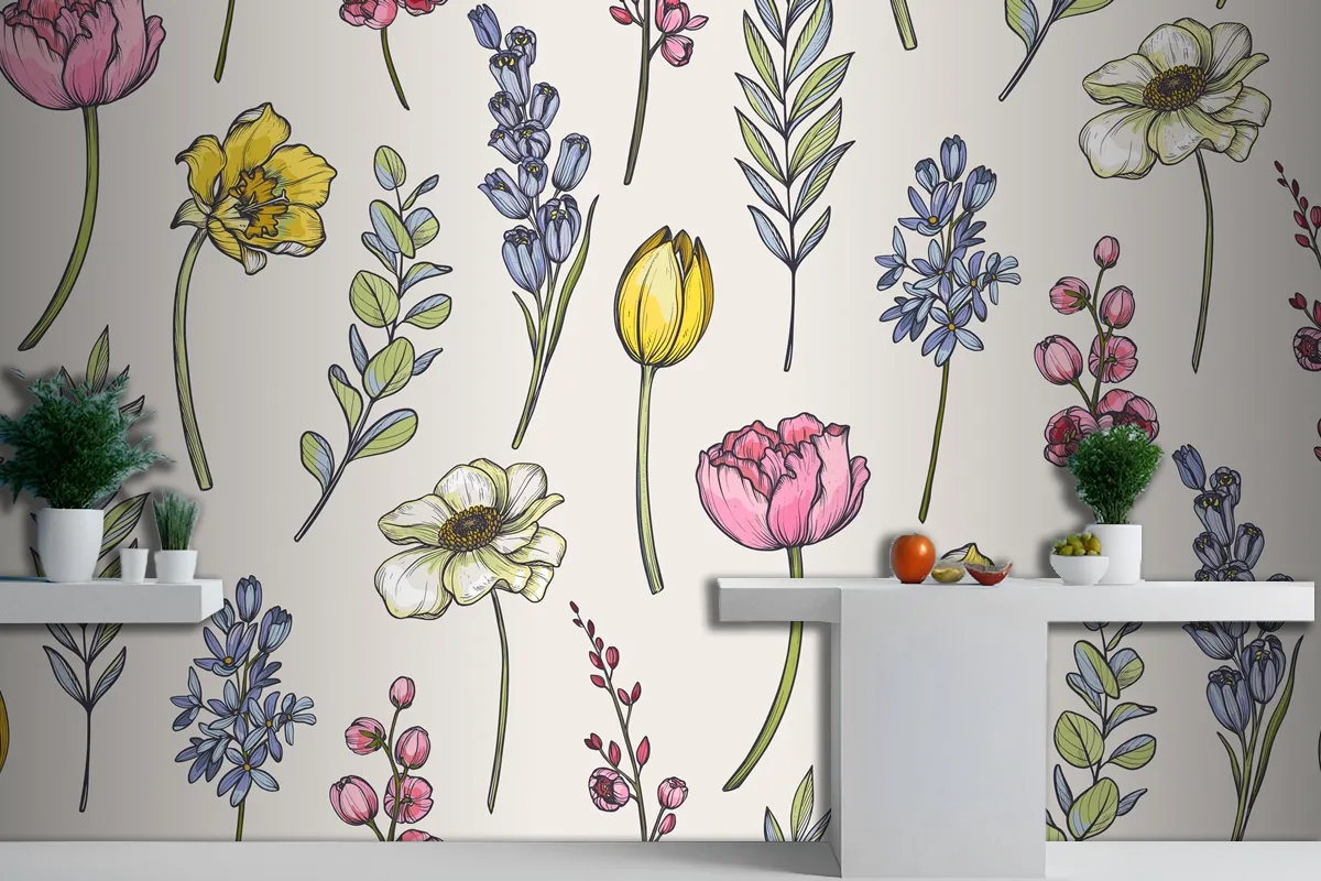 Fototapete Nahtloses Muster Mit Frühlingsblumensträußen