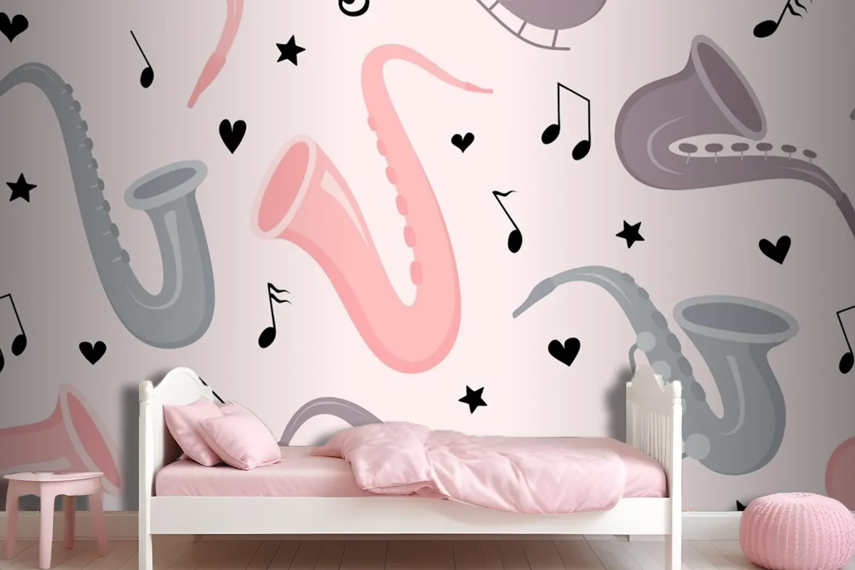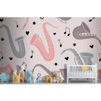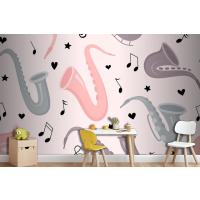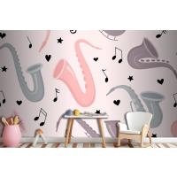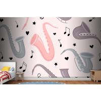Fototapete Nahtloses Muster Mit Handgezeichnetem Saxophon