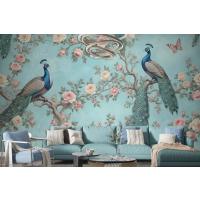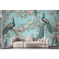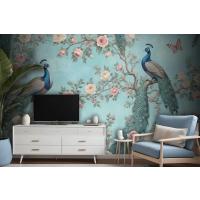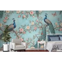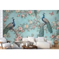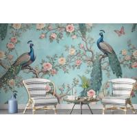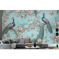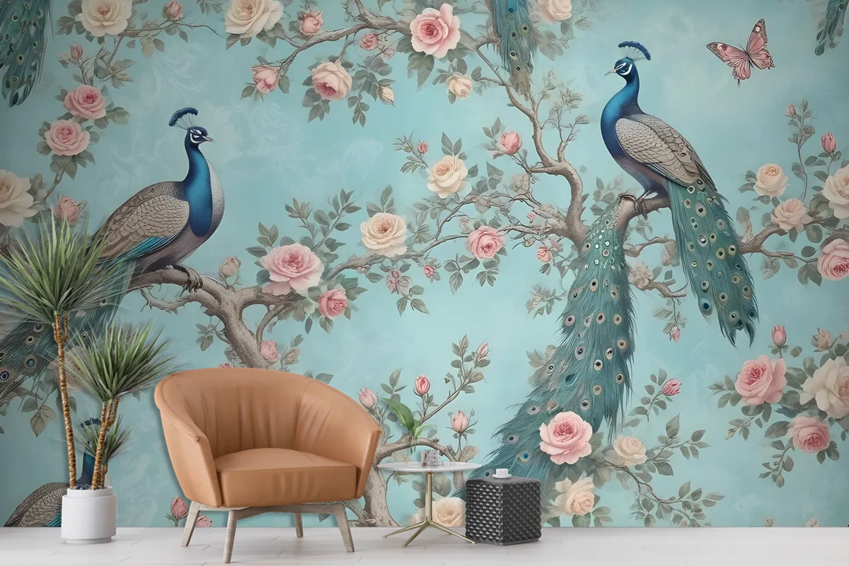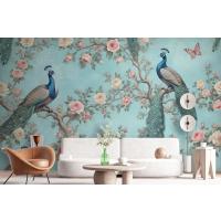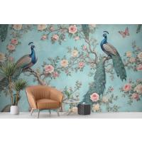 Fototapete Ein Pfau Umgeben Von Blumen Und Schmetterlingen