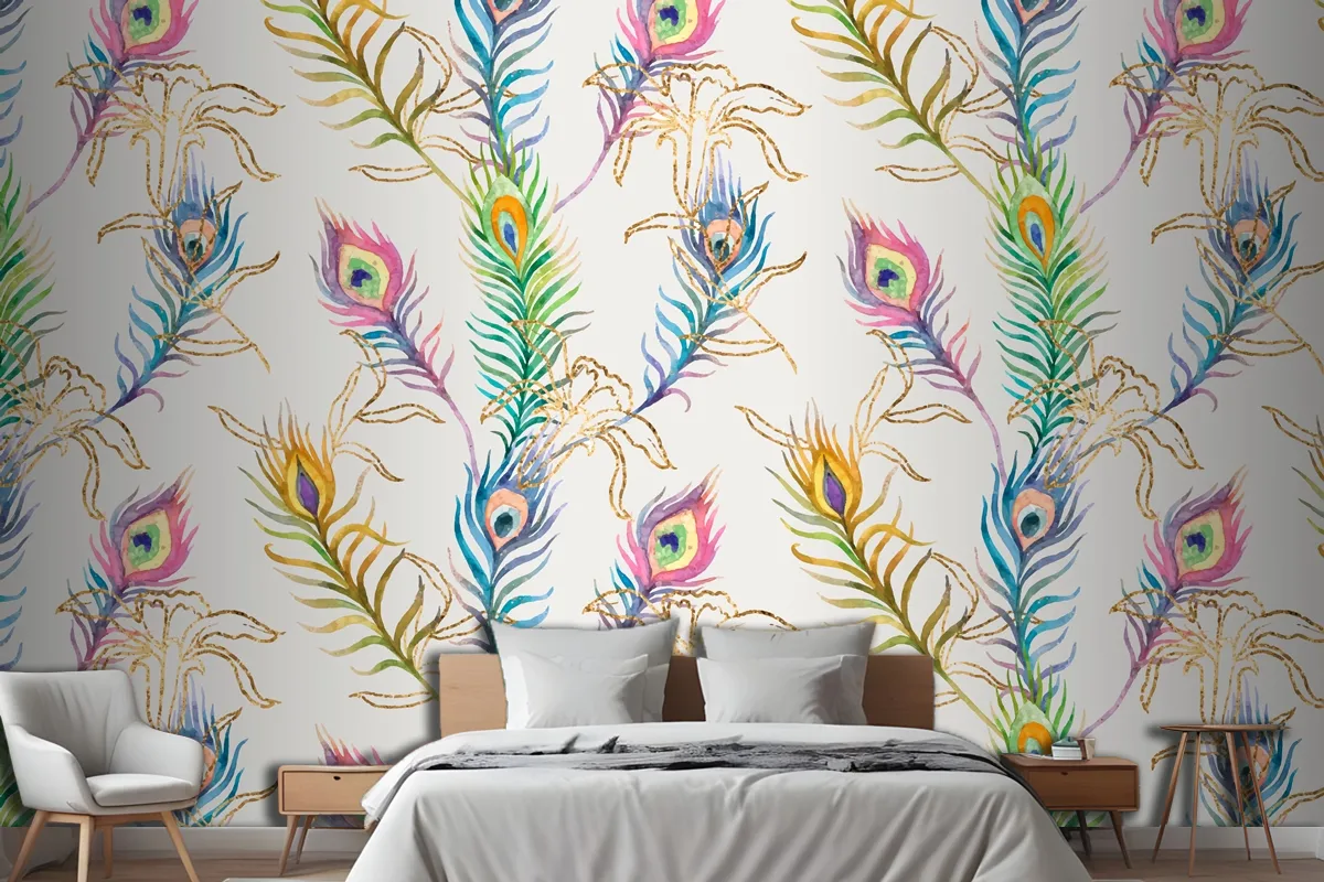 Fototapete PfauenfederHintergrund Mit Buntem Aquarellmuster