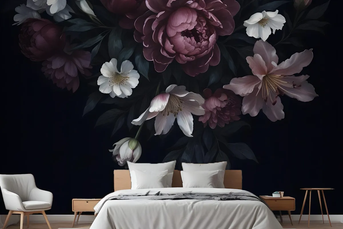 Fototapete Pfingstrose In Dunkelrot Mit Blumen