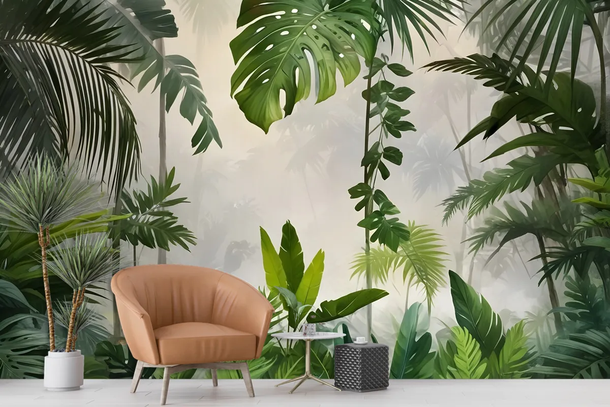 Fototapete Realistische Tropische Dschungelpflanzenlandschaft