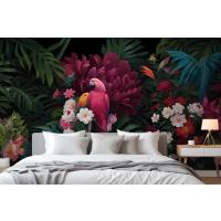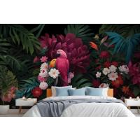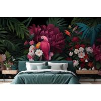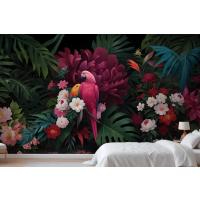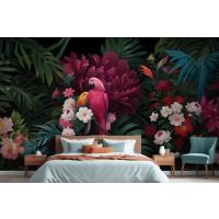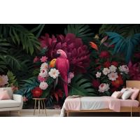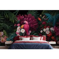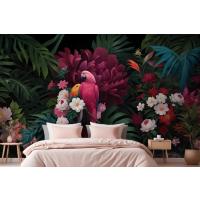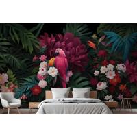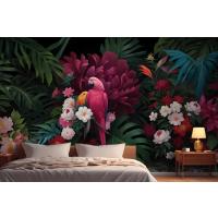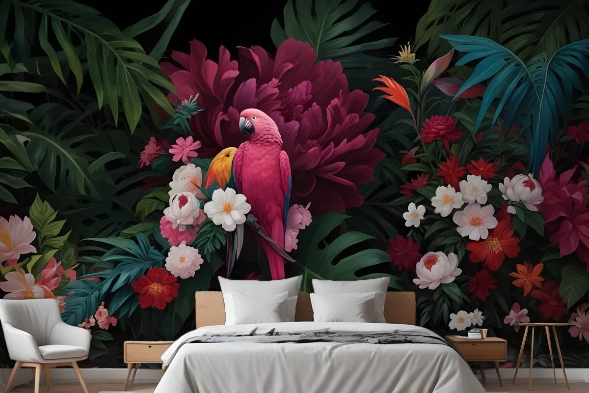 Fototapete Rosa Papagei Mit Bunten Blumen