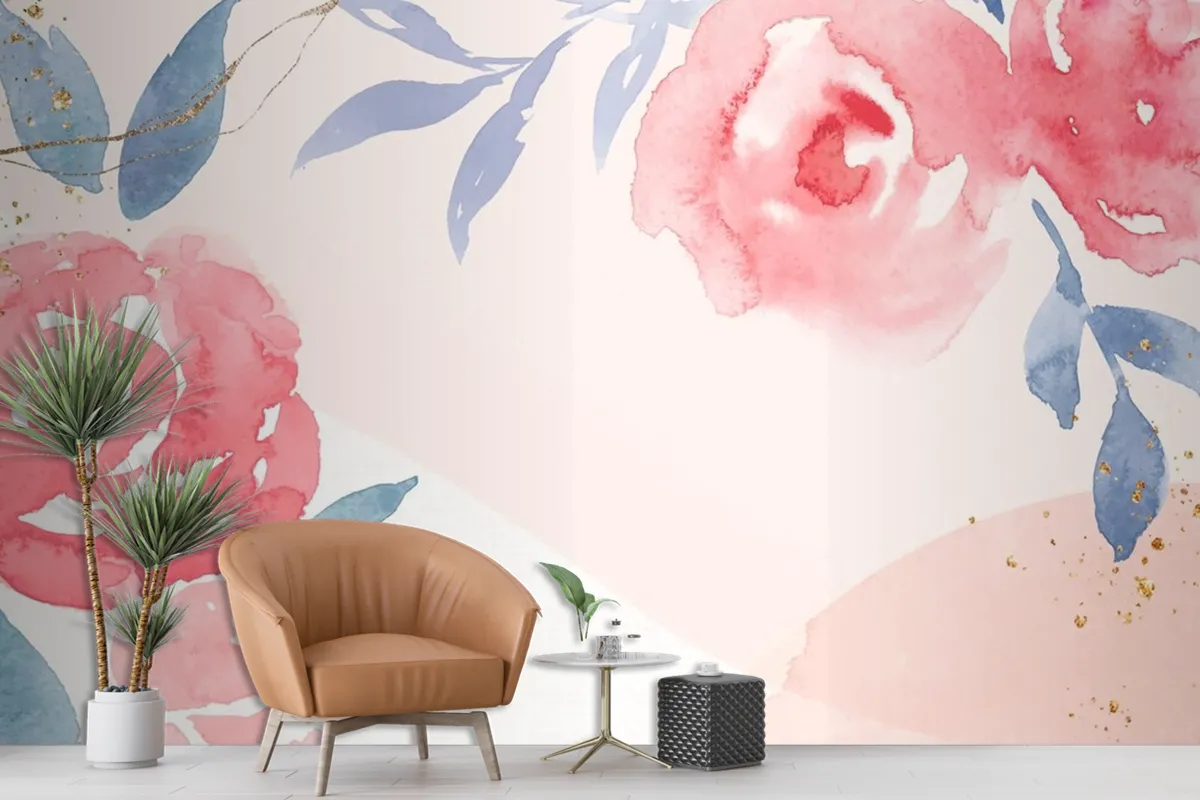 Fototapete Rosa Rosenrahmen Hintergrund Vektor Frühling Aquarell
