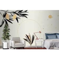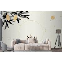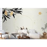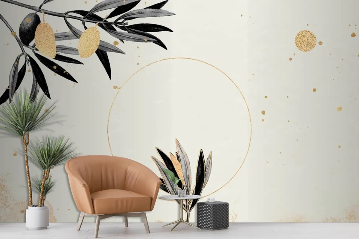 Fototapete Runder Goldrahmen Mit Olivenzweigen