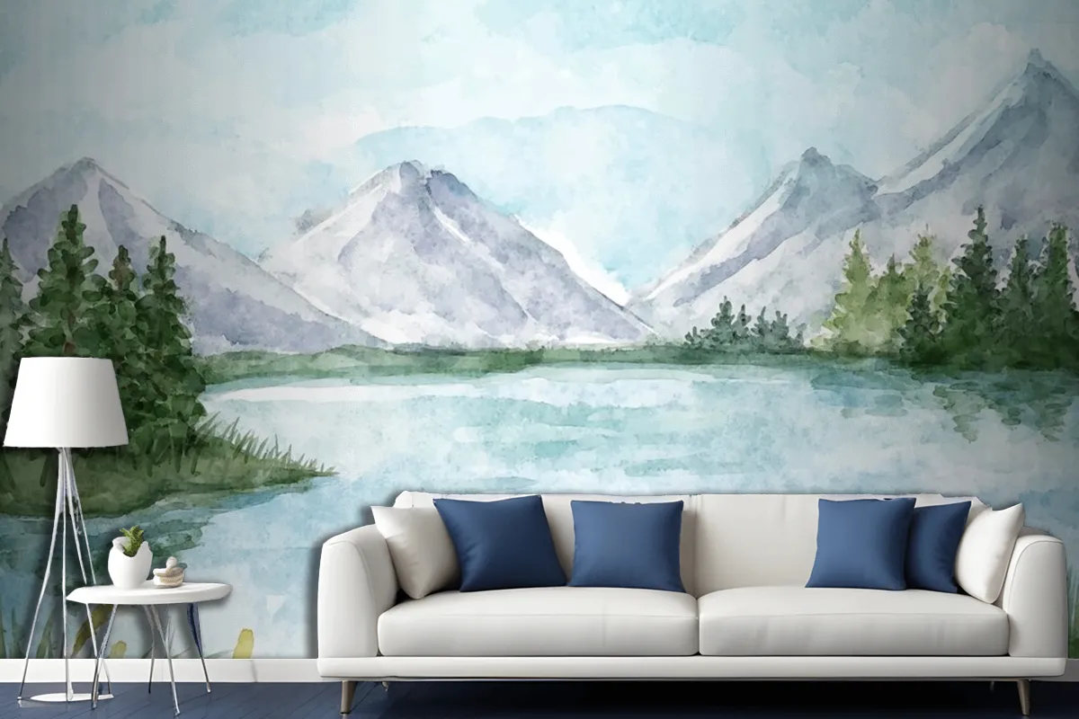 Fototapete Seelandschaft In Aquarell Für Wohnzimmer