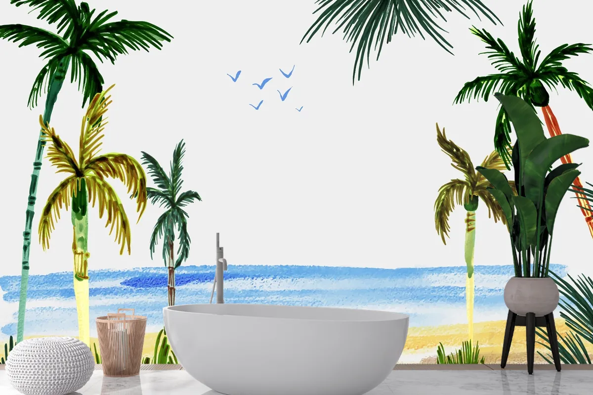 Fototapete Sommer Badezimmer Handgemaltes Aquarell