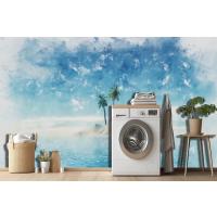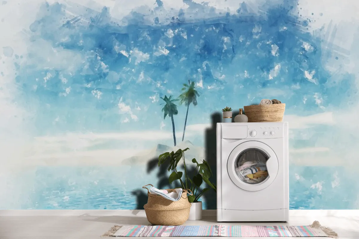 Fototapete Sommerpalmeninsel Mit Handgemaltem Aquarell