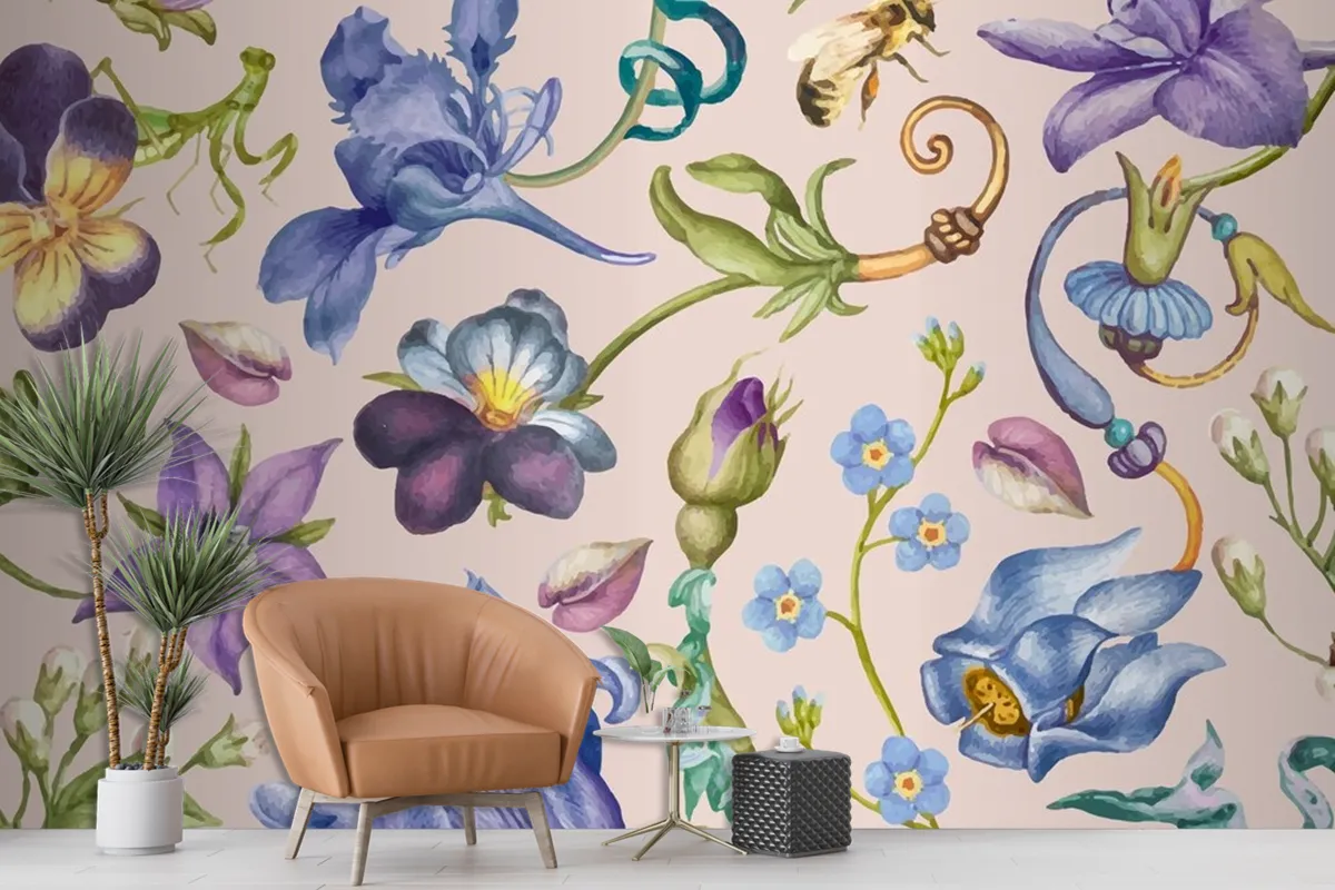 Fototapete Ästhetisches Lila Blumenmuster Auf Rosa Hintergrund