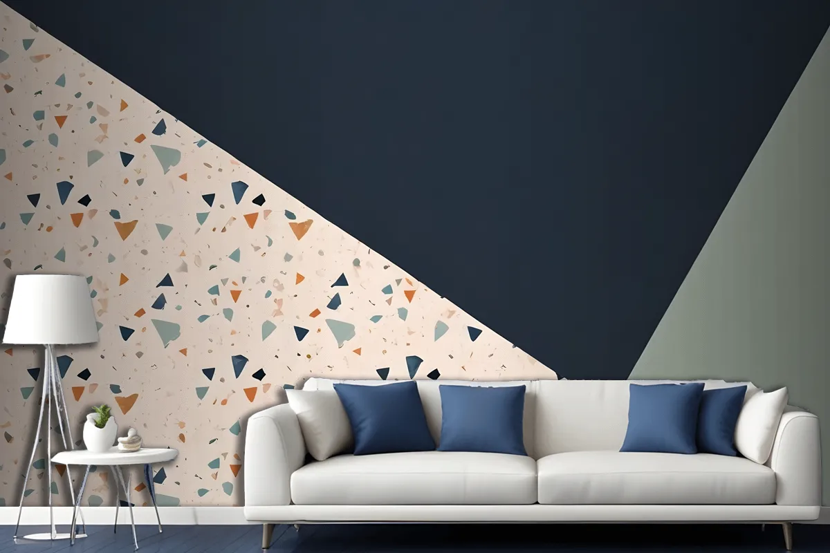 Fototapete TerrazzoStil Muster Mit Verschiedenen Formen Blau Und Hellgrün