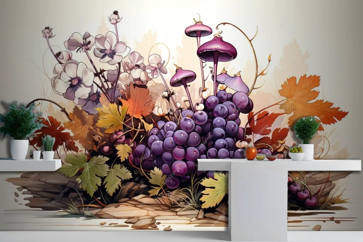 Fototapete Trauben Nahtloses Muster Früchte Hintergrund Aquarell