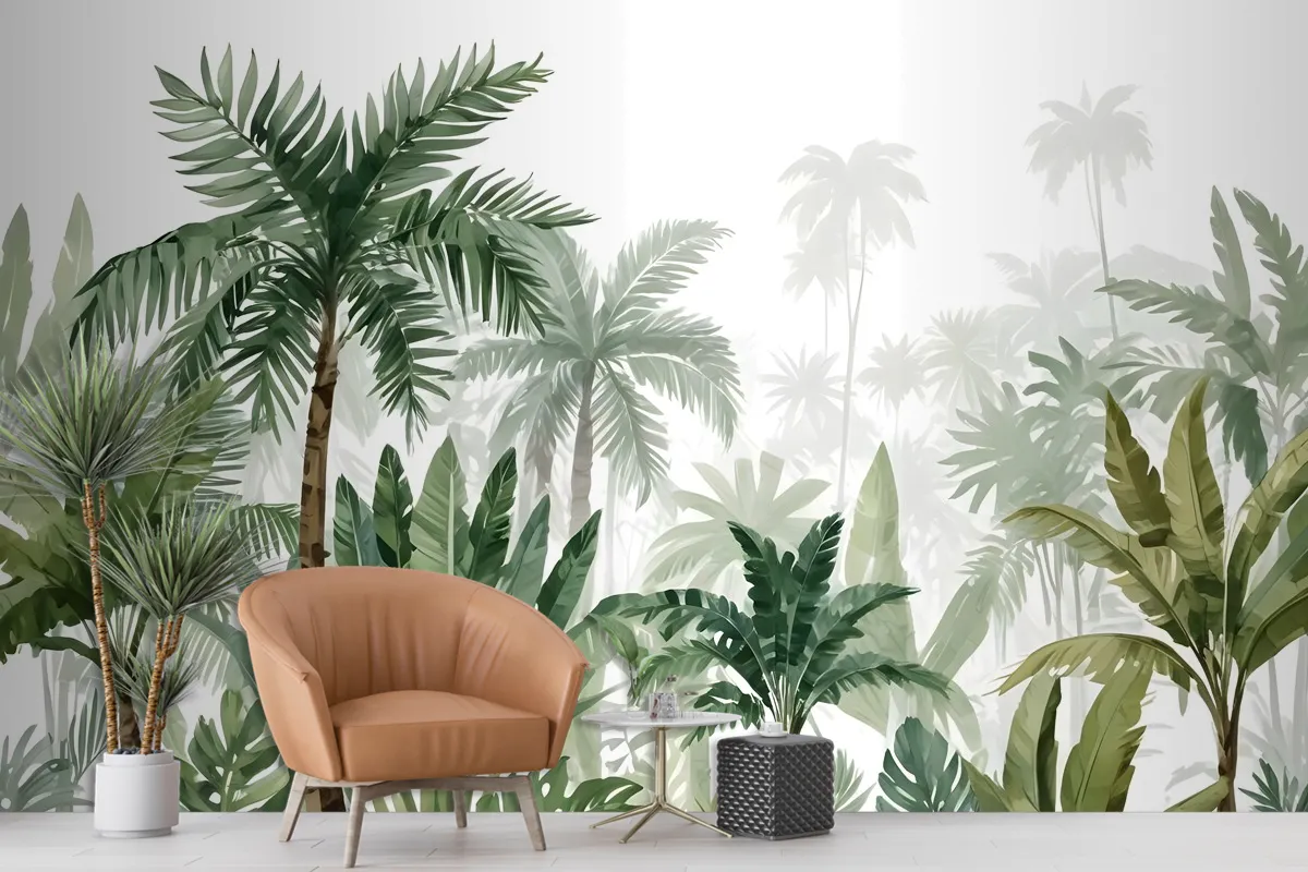 Fototapete Tropische CartoonPalme Und Bananenblätter