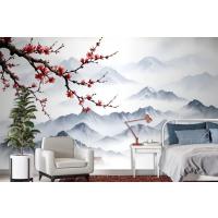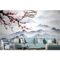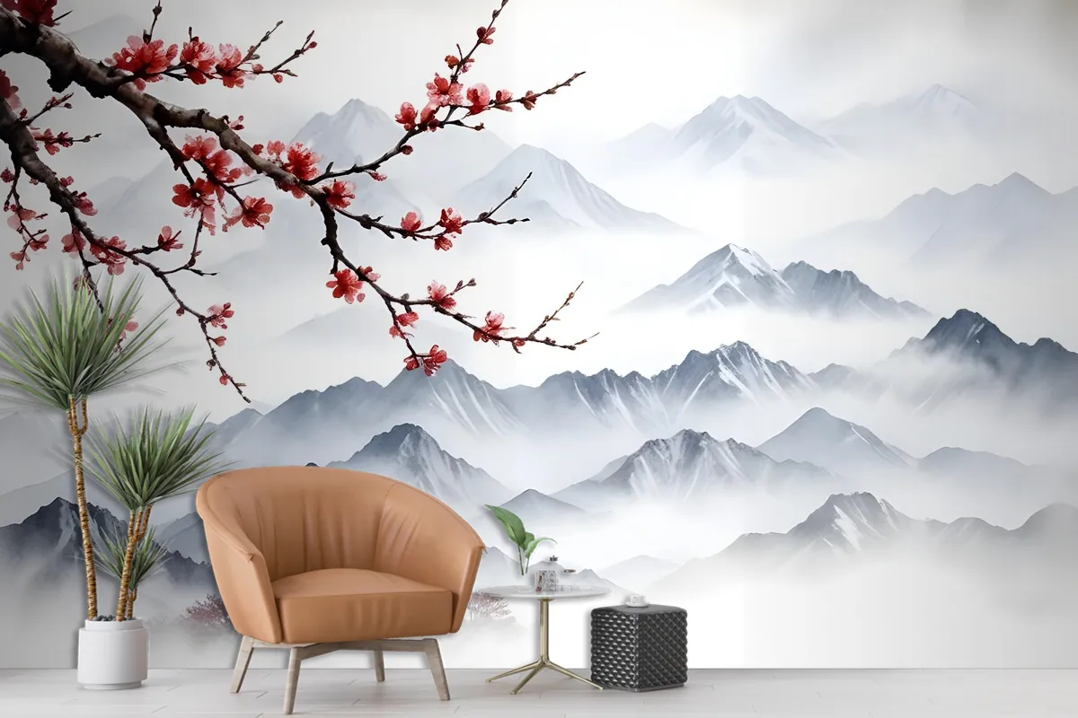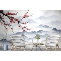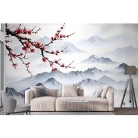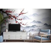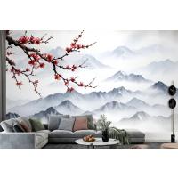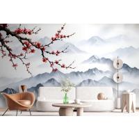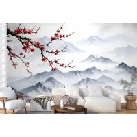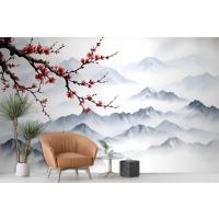 Fototapete Verschneite Berglandschaft Mit Kirschblüten