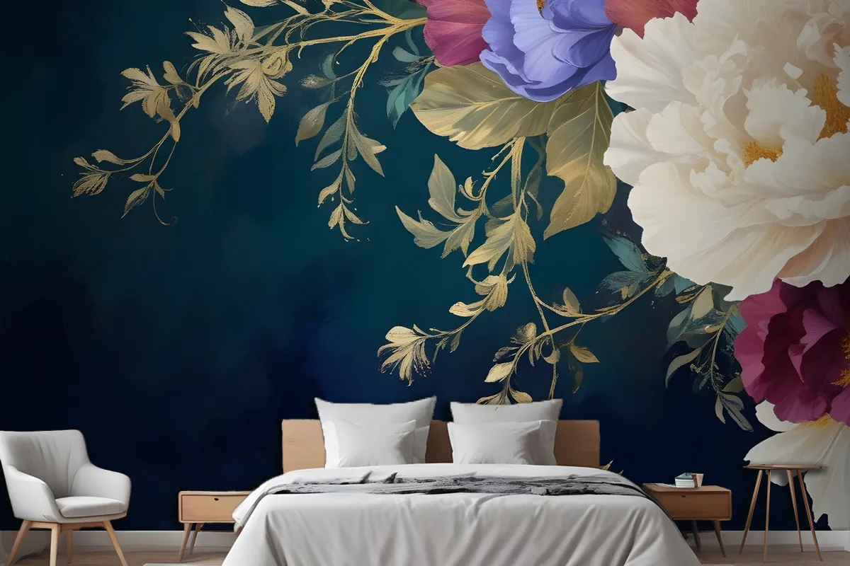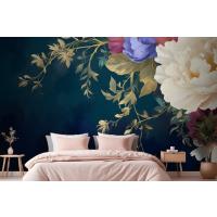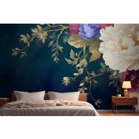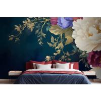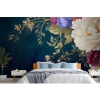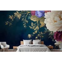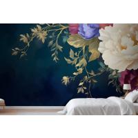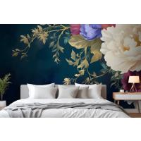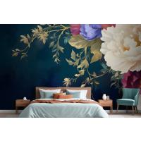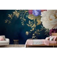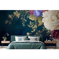 Fototapete Aquarell Blumen Pfau Phönix Rose Pfingstrose Tiere