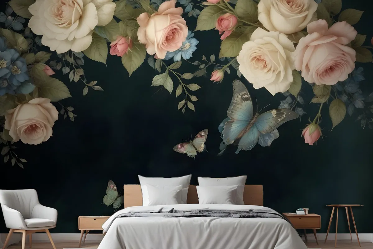 Fototapete Vintage Ölgemälde Dunkle Rosen