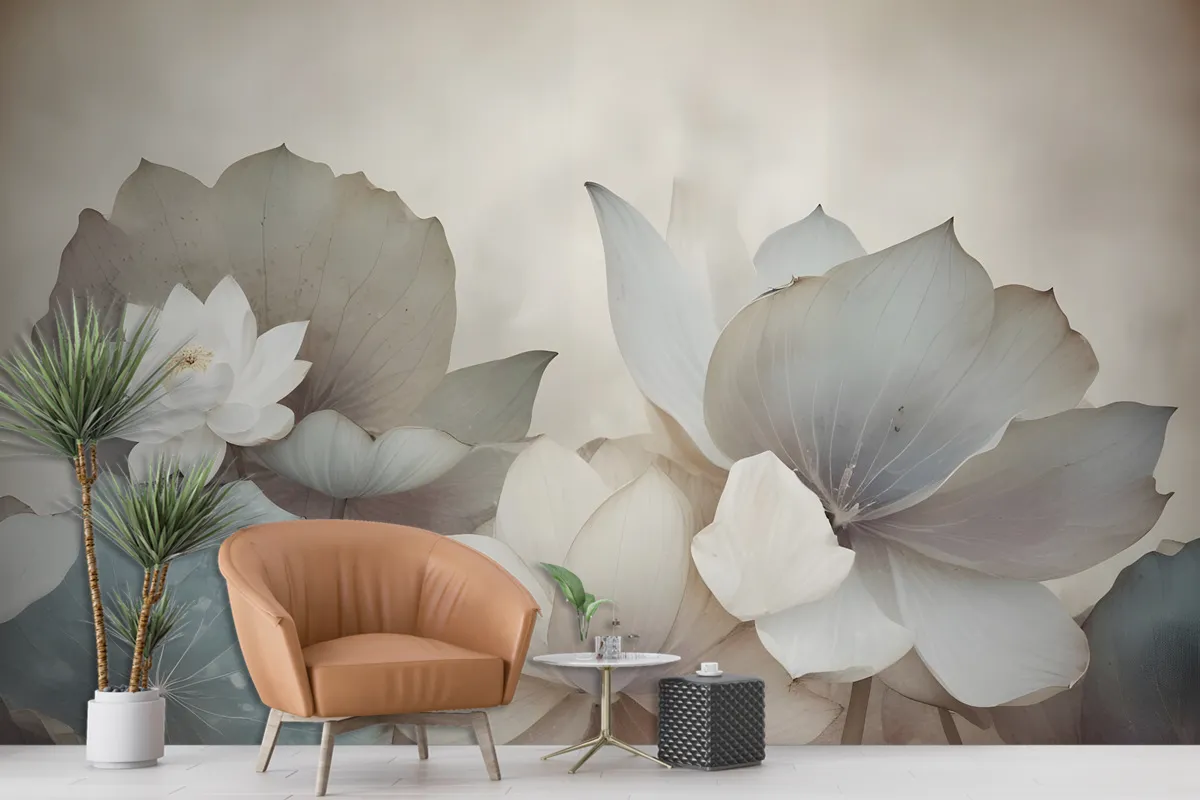 Fototapete VintageBlumen Mit RetroLotusblatt