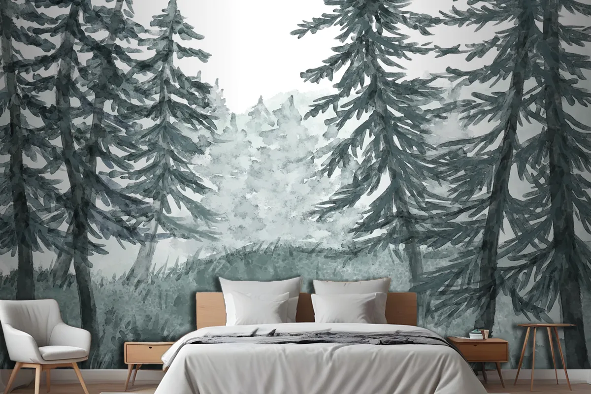 Fototapete Waldlandschaft In Aquarell