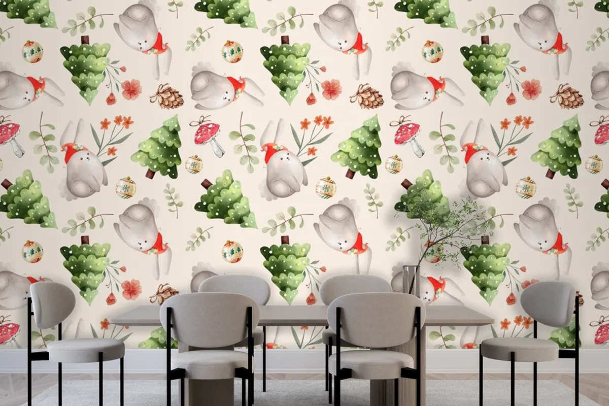 Fototapete WeihnachtsmusterDesign In Aquarell