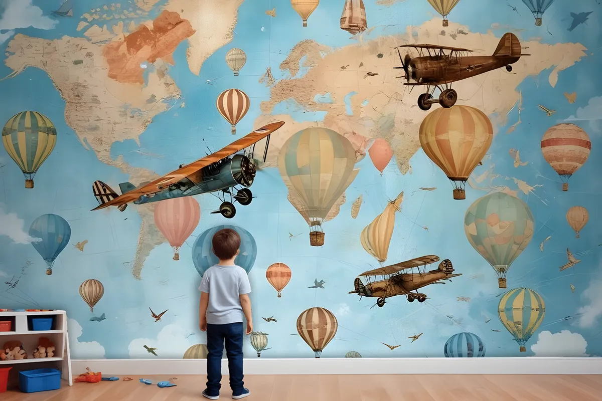 Fototapete Weltkarte Für Kinder Im 3DLook Mit Heißluftballon