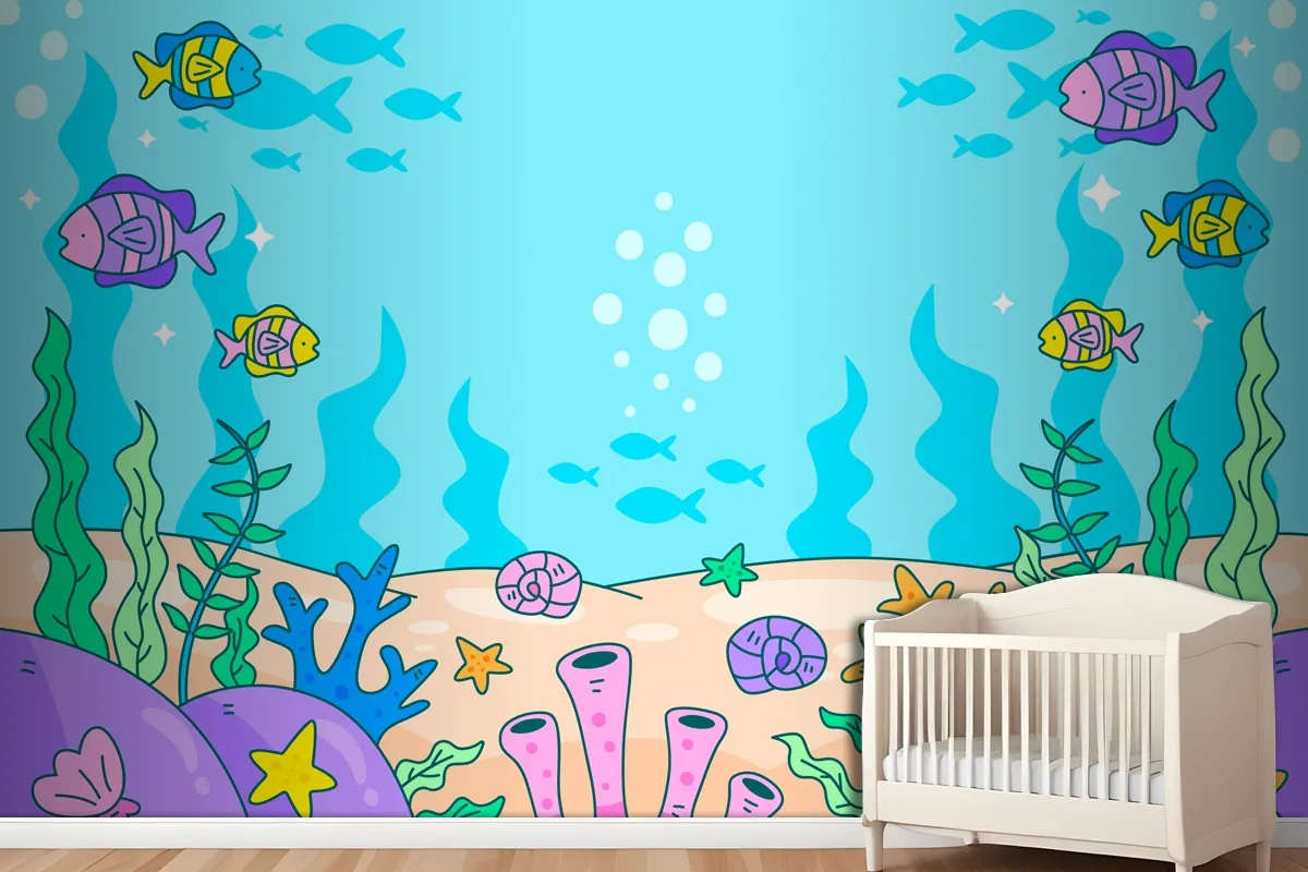 Fototapete Welttag Der Ozeane – Handgezeichneter Hintergrund