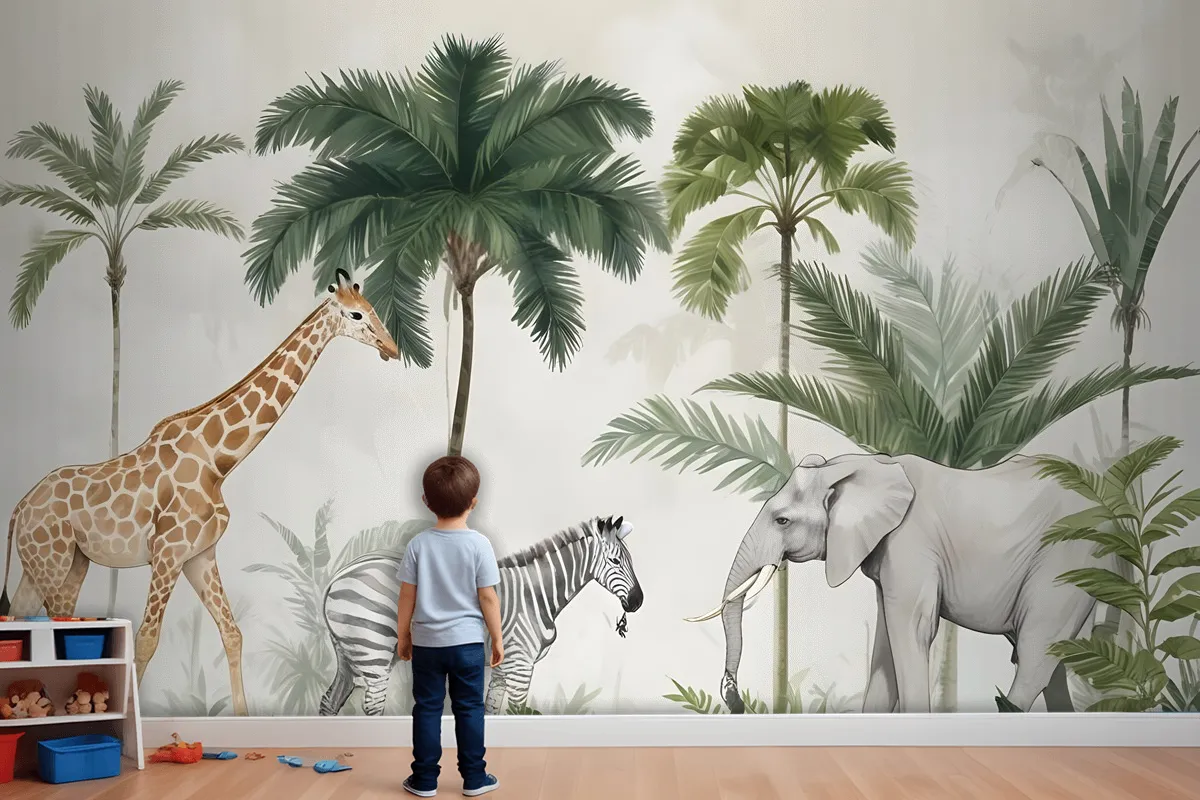 Fototapete Wilde Tropische Tiere Mit Palmen Für Kinder