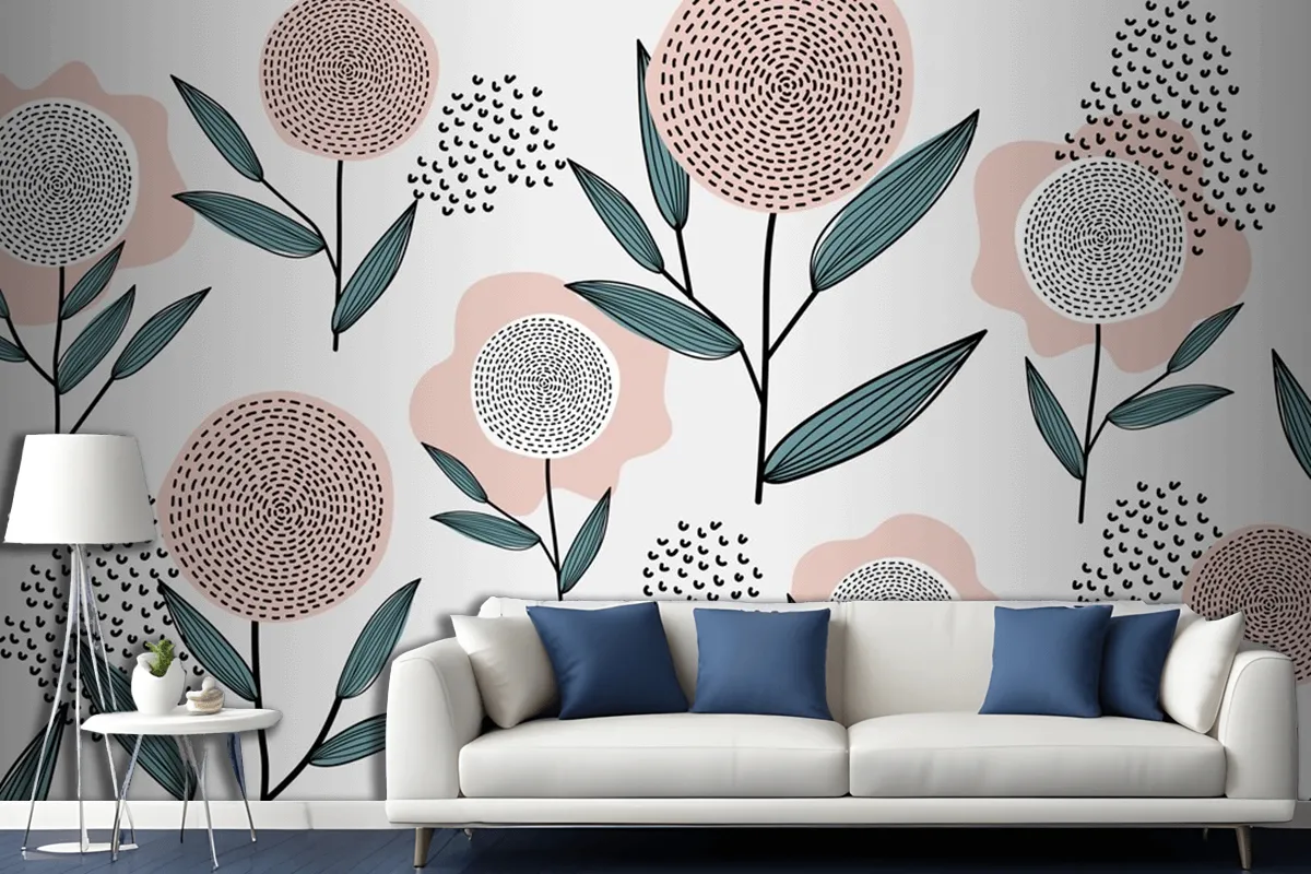 Fototapete Wohnzimmer Mit RetroBlumenmuster