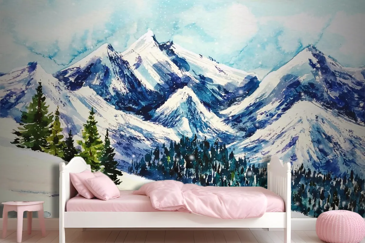 Fototapete Wunderschöne Winterlandschaft Im AquarellHintergrund