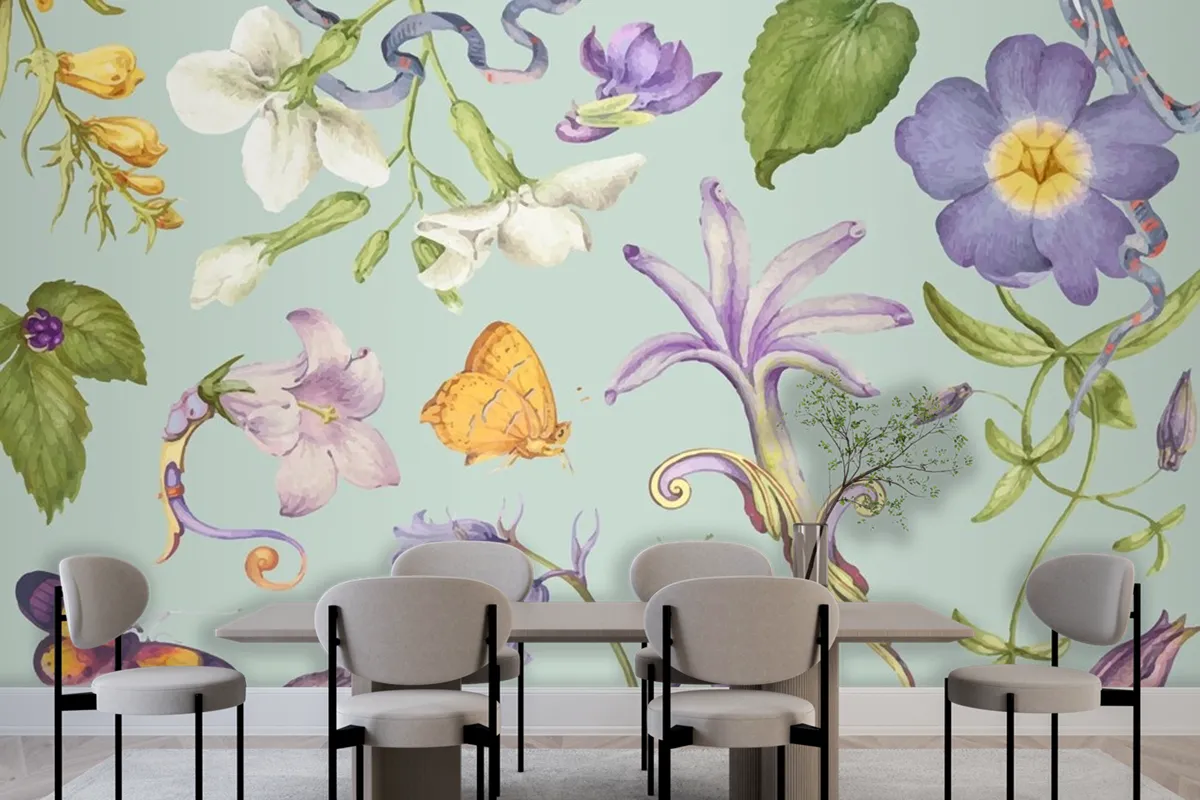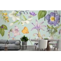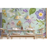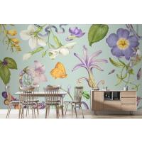 Fototapete Wunderschönes Lila Blumenmuster Auf Grün
