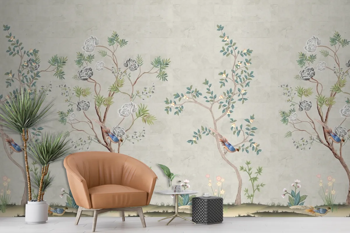 Frühling Nahtloser Hintergrund Baum Und Vogel Chinoiserie Schöne Fototapete